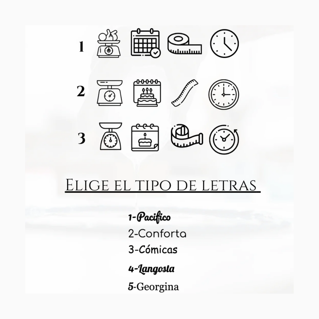 Para personalizarlo: Elige un color, tipo de letras, iconos y brillos si lo deseas agregar a tu pieza, sube tus fotos a la plataforma.