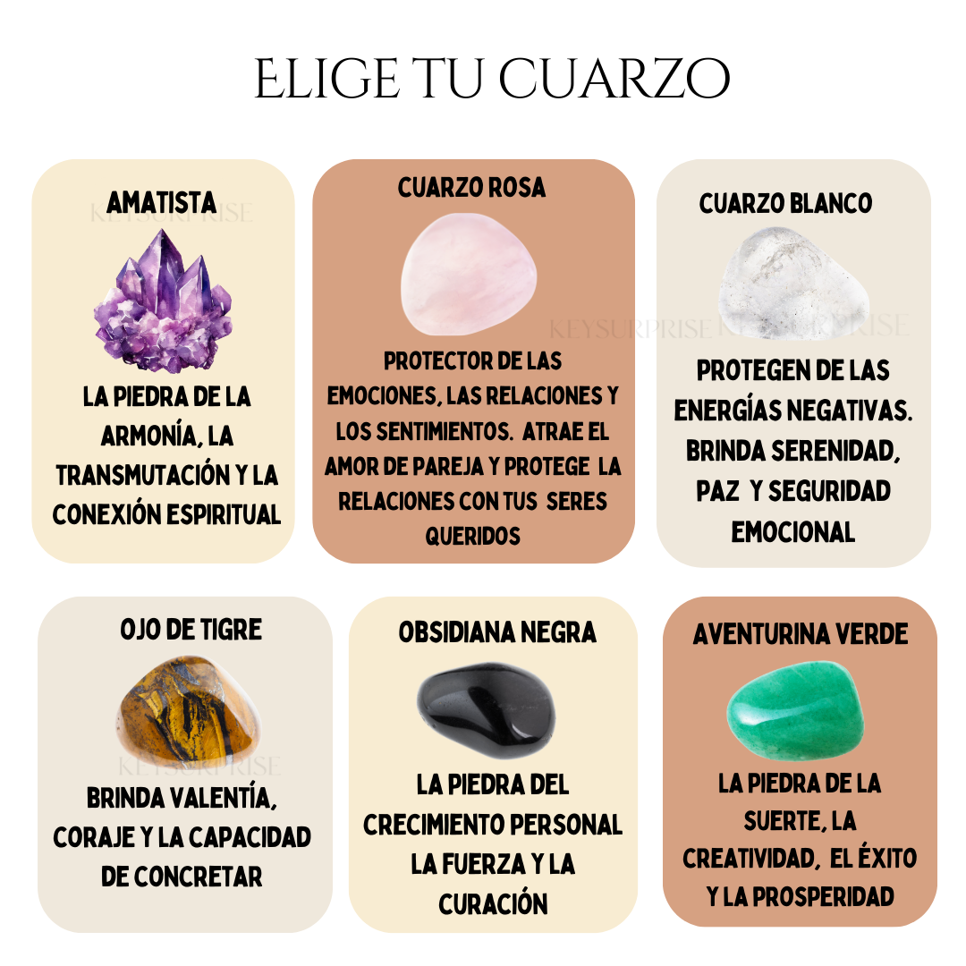 A collection of colors combined with your favorite quartz. 🤩, each quartz represents a different energy, choose your favorite and we will create it for you.