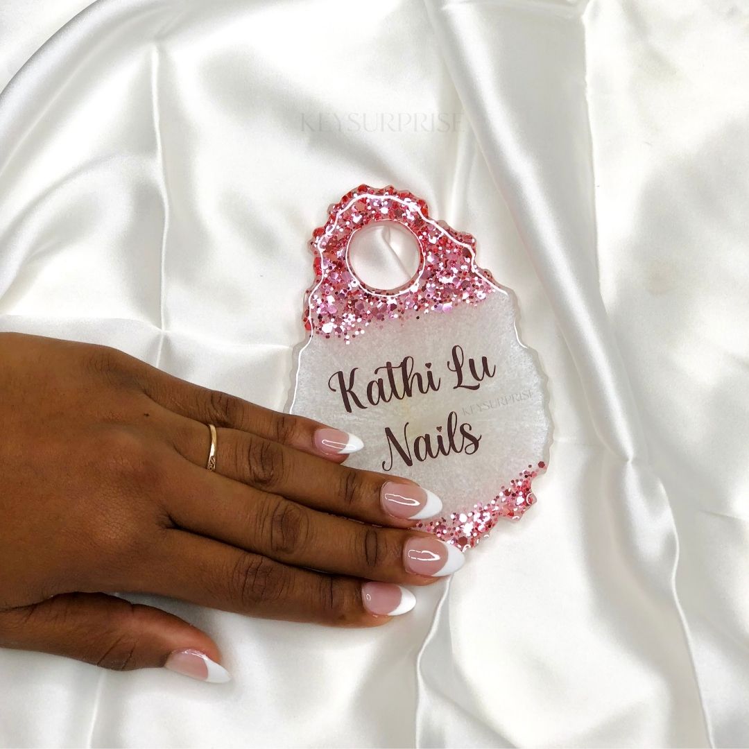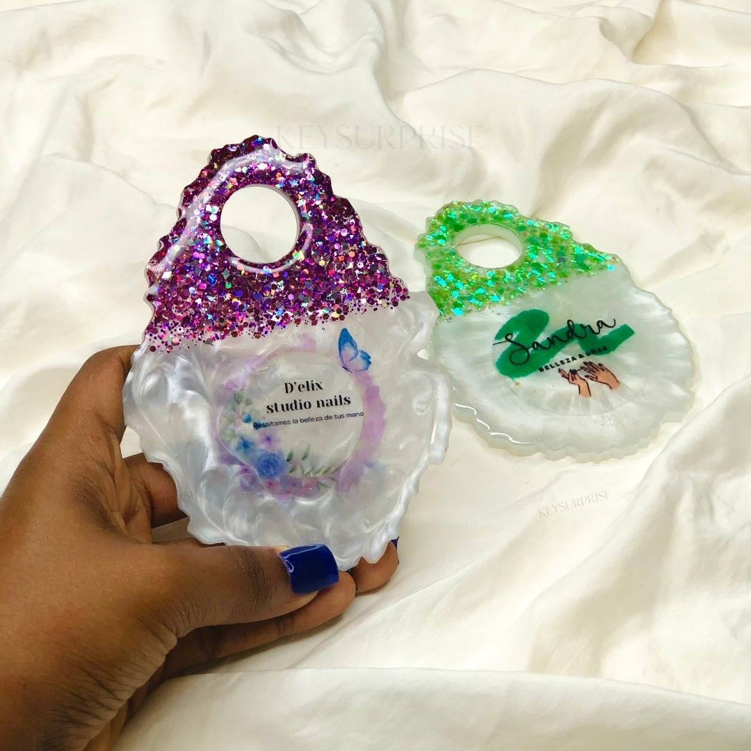 Esta pieza es para ti si haces uñas, cuando termines del set hazle una foto a tu clienta usando esta pieza con tu logotipo o nombre.