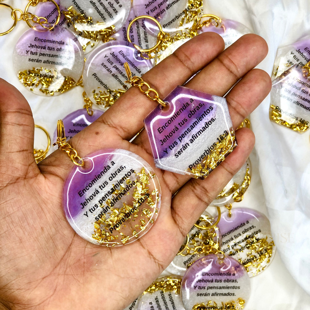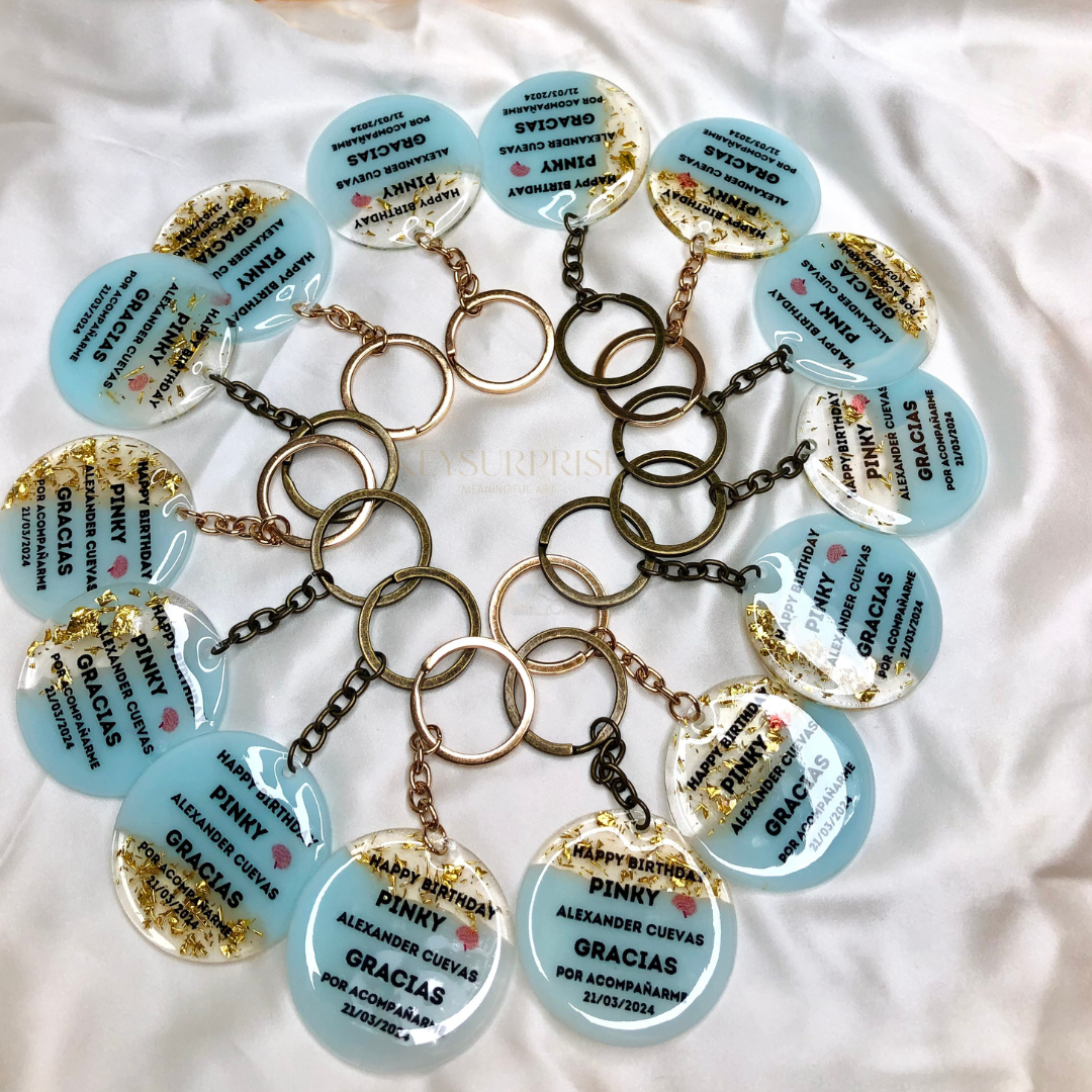 Llavero personalizado, cobertura de resina y diseño personalizado.